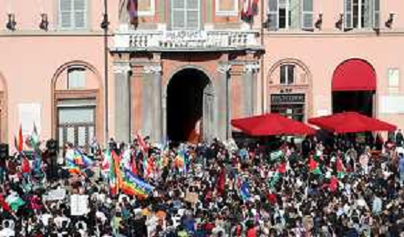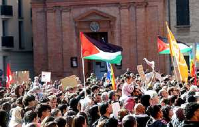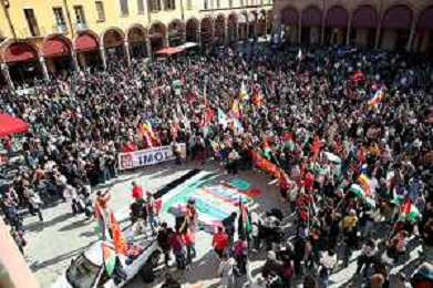 IMOLA 03 10 2025 PROTESTA PER PALESTINA LIBERA E PER LA FLOTILLA VERSO GAZA E SCIOPERO GENERALE CGIL IMOLA IN DIFESA DI FLOTILLA PER GAZA NELLA FOTO PIAZZA MATTEOTTI CON I MANIFESTANTI ©SANNA - AGENZIA ALDO LIVERANI SAS