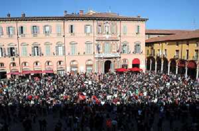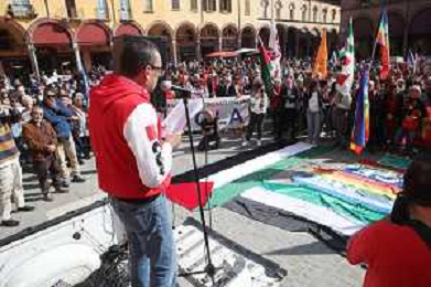 IMOLA 03 10 2025 PROTESTA PER PALESTINA LIBERA E PER LA FLOTILLA VERSO GAZA E SCIOPERO GENERALE CGIL IMOLA IN DIFESA DI FLOTILLA PER GAZA NELLA FOTO STEFANO MONI CGIL IMOLA CON LA GENTE IN PIAZZA MATTEOTTI ©SANNA - AGENZIA ALDO LIVERANI SAS
