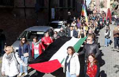 IMOLA 03 10 2025 PROTESTA PER PALESTINA LIBERA E PER LA FLOTILLA VERSO GAZA E SCIOPERO GENERALE CGIL IMOLA IN DIFESA DI FLOTILLA PER GAZA NELLA FOTO CORTEO VERSO PIAZZA MATTEOTTI SINDACO MARCO PANIERI,VICE SINDACO ELISA SPADA,BESATRICE POLI VIC PRESIDENTE DEL CIRCONDARIO IMOLESE,MIRELLA COLLINA,ELISABETTA MARCHETTI ©SANNA - AGENZIA ALDO LIVERANI SAS