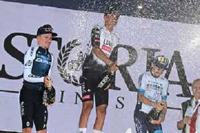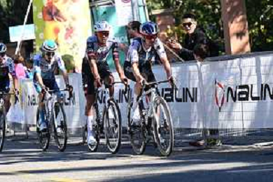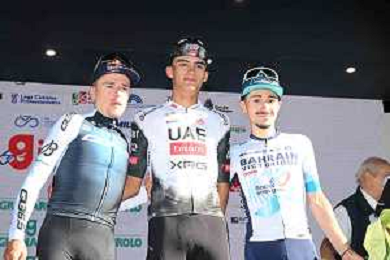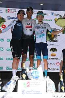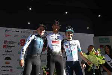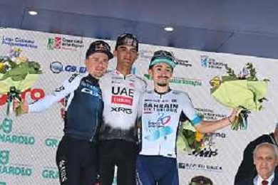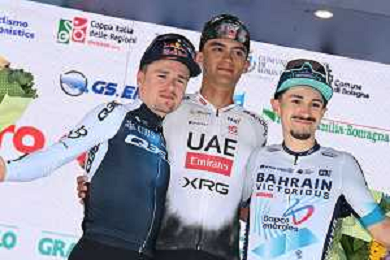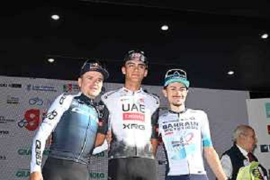 04-10-2025 Giro Dell'emilia; 2025, Uae Team Emirates - Xrg; 2025, Q36.5; 2025, Bahrain - Victorious; Del Toro Romero, Isaac; Pidcock, Thomas; Martinez, Lenny; Bologna - San Luca; ©SIROTTI - AGENZIA ALDO LIVERANI SAS