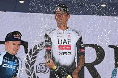 04-10-2025 Giro Dell'emilia; 2025, Uae Team Emirates - Xrg; 2025, Q36.5; Del Toro Romero, Isaac; Pidcock, Thomas; Bologna - San Luca; ©SIROTTI - AGENZIA ALDO LIVERANI SAS