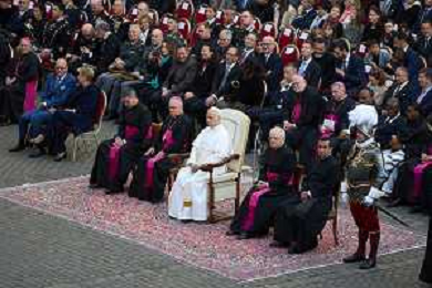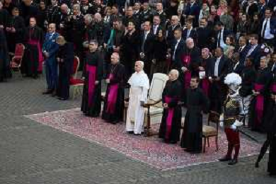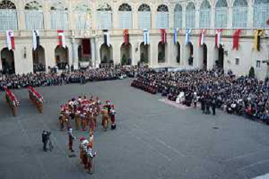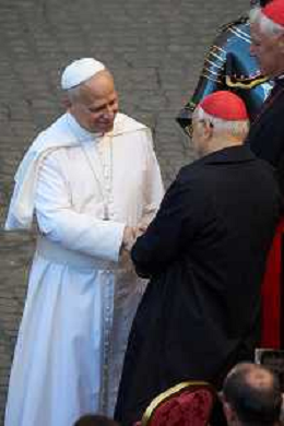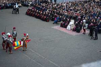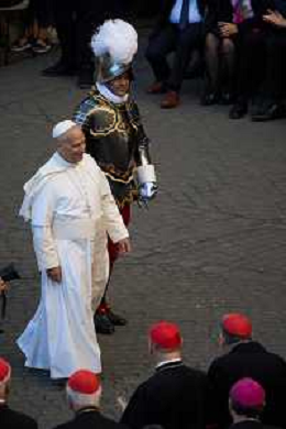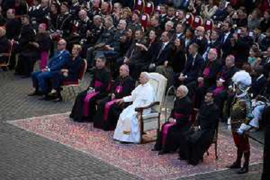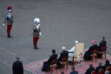 Citta’ del Vaticano 04 Ottobre 2025 Giuramento della Giuramento della Guardia Svizzera Pontificia alla presenza di Sua Santita’ Papa Leone XIV (non accadeva dal 1968 con Paolo VI) nel cortile di San Damaso del Palazzo Apostolico Nella foto: Papa Leone XIV Foto Credit: Andrea Bracaglia- AGENZIA ALDO LIVERANI SAS