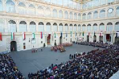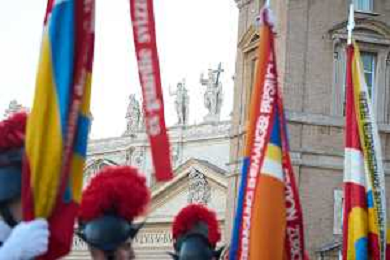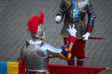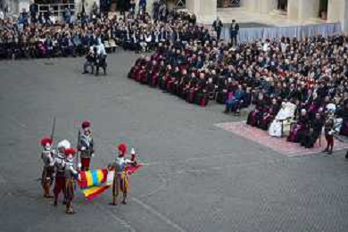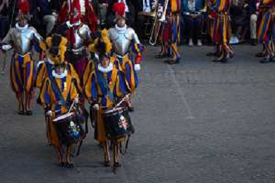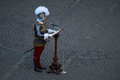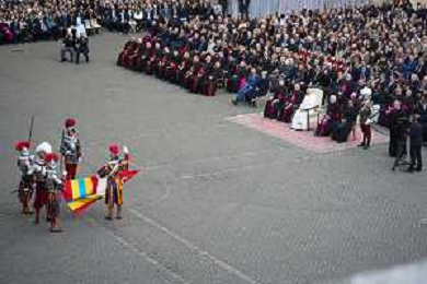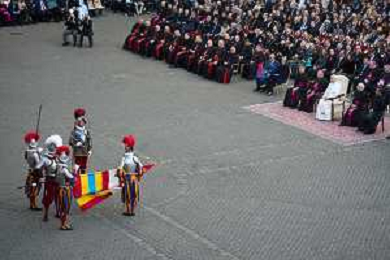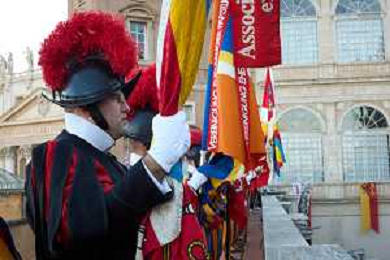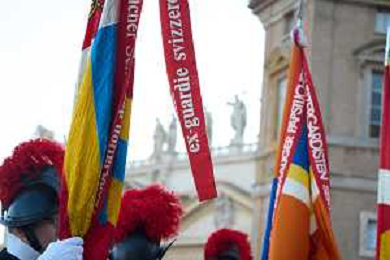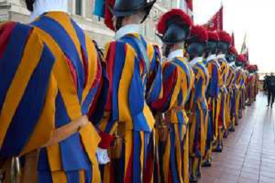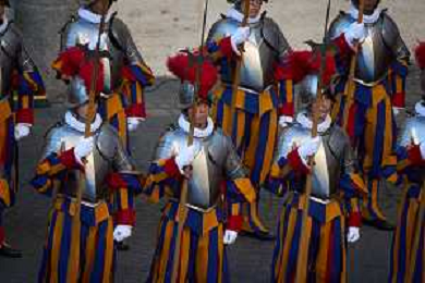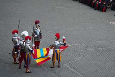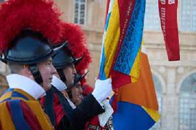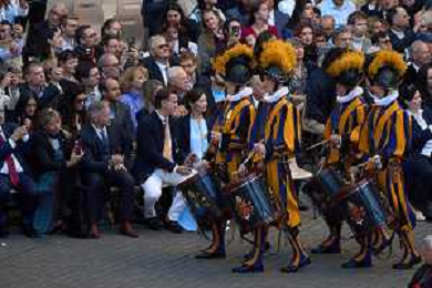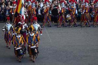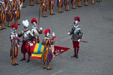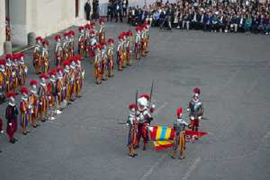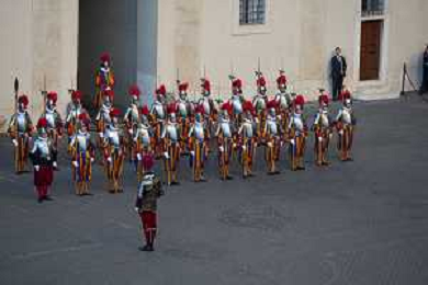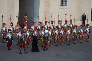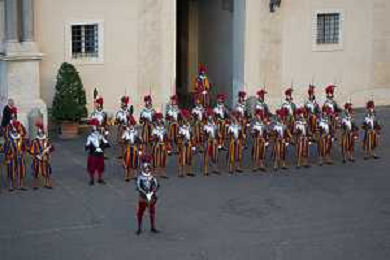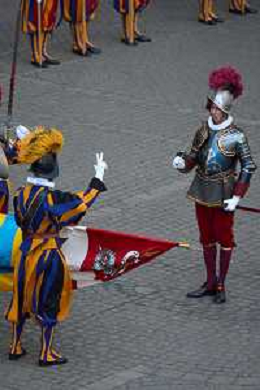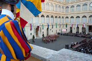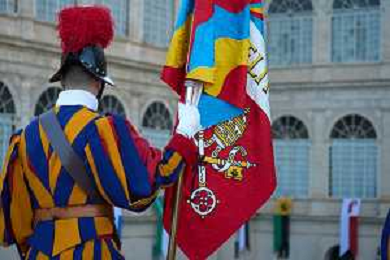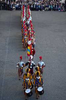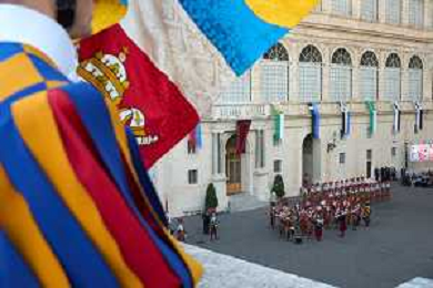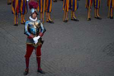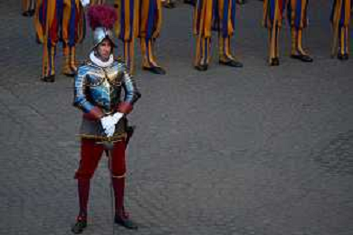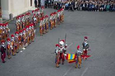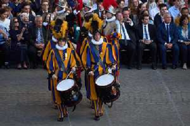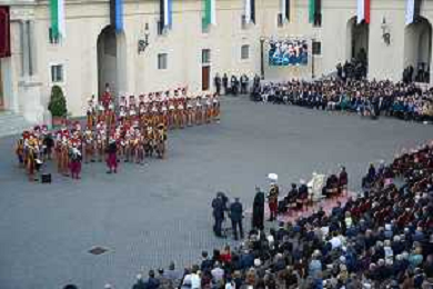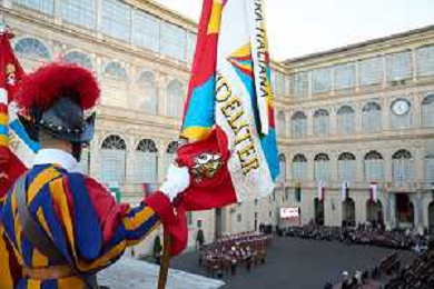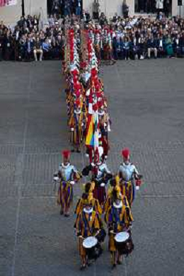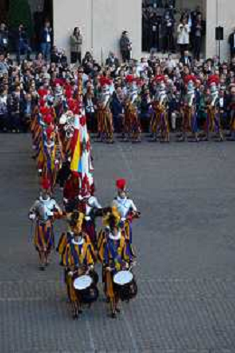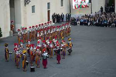 Citta’ del Vaticano 04 Ottobre 2025 Giuramento della Giuramento della Guardia Svizzera Pontificia alla presenza di Sua Santita’ Papa Leone XIV (non accadeva dal 1968 con Paolo VI) nel cortile di San Damaso del Palazzo Apostolico Nella foto: Foto Credit: Andrea Bracaglia- AGENZIA ALDO LIVERANI SAS