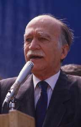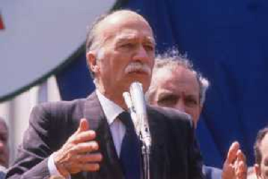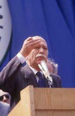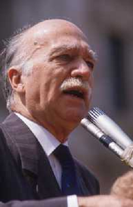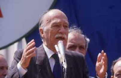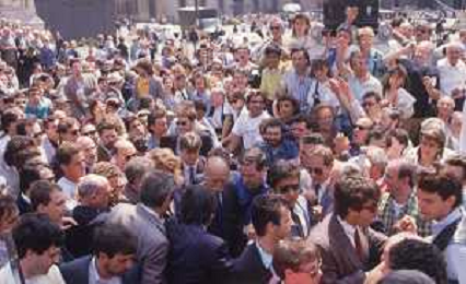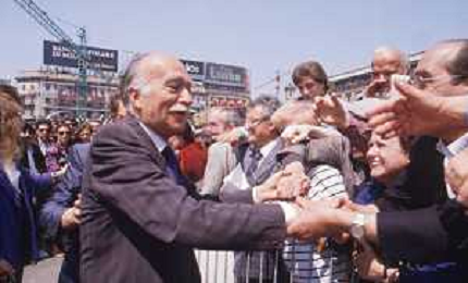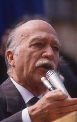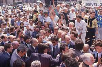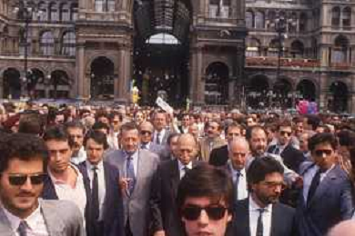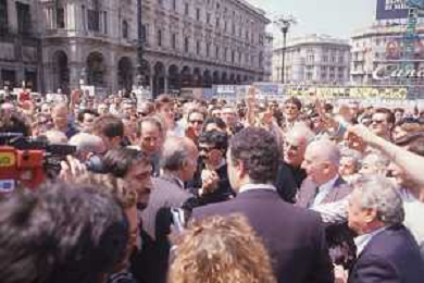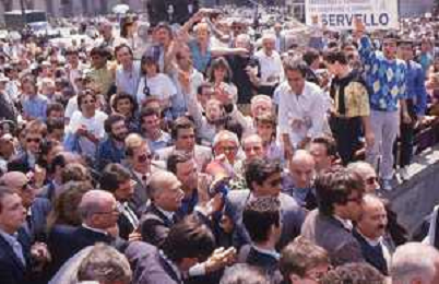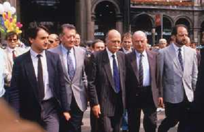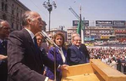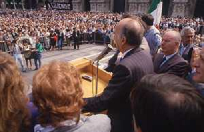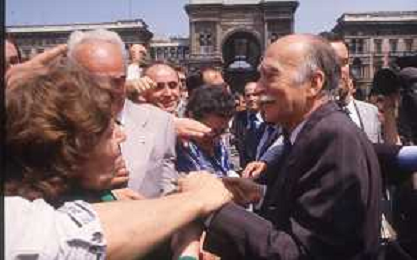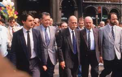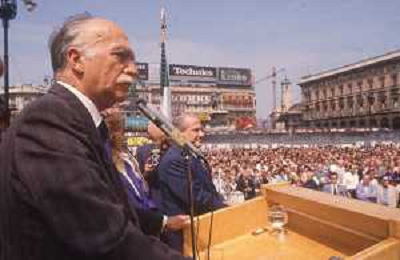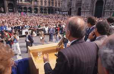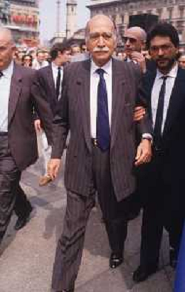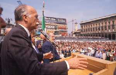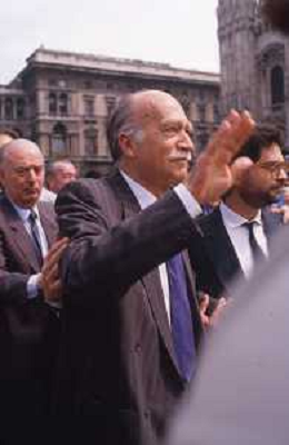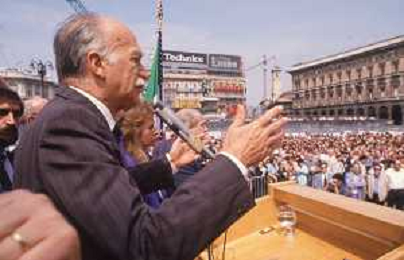 DIAP-RETROSPETTIVA GIORGIO ALMIRANTE POLITICO NELLA FOTO GIORGIO ALMIRANTE IN PIAZZA DUOMO A MILANO NELL'ANNO 1987 AG ALDO LIVERANI SAS