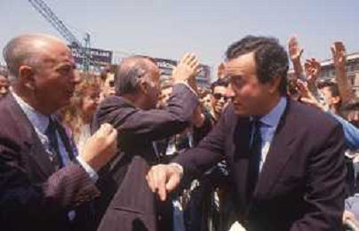 DIAP-RETROSPETTIVA GIORGIO ALMIRANTE POLITICO NELLA FOTO GIORGIO ALMIRANTE IN PIAZZA DUOMO A MILANO NELL'ANNO 1987 E FRANCO SERVELLO AG ALDO LIVERANI SAS