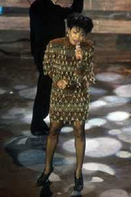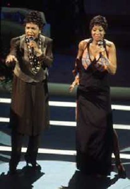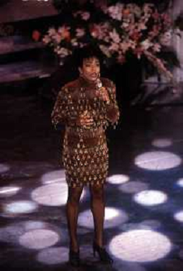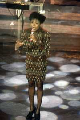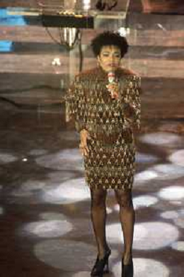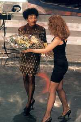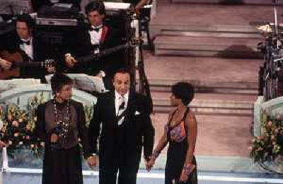 DIAP-RETROSPETTIVA DEE DEE BRIDGEWATER CANTANTE NELLA FOTO DEE DEE BRIDGEWATER A SANREMO NELL'ANNO 1991 CON PIPPO BAUDO AG ALDO LIVERANI SAS