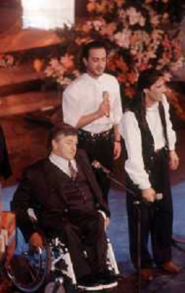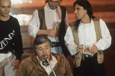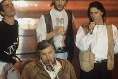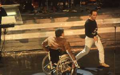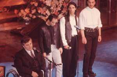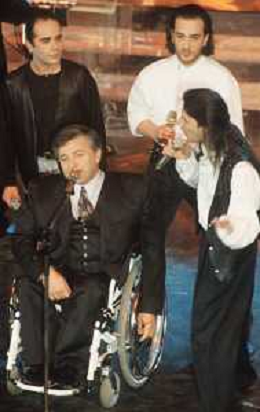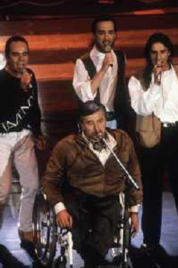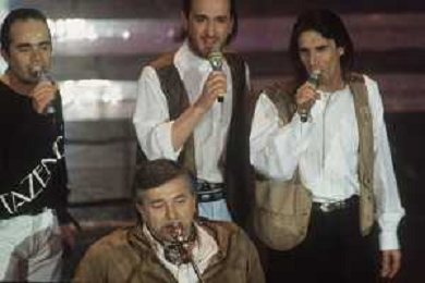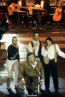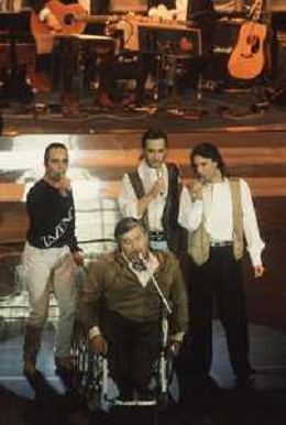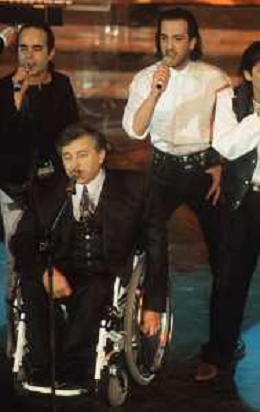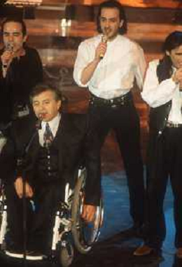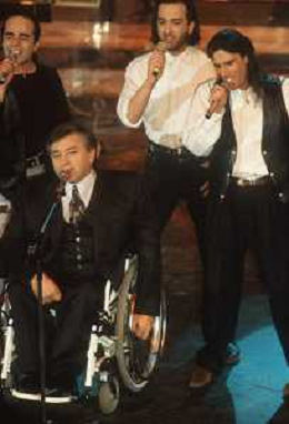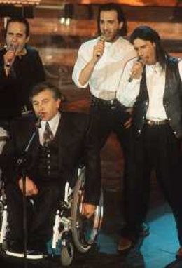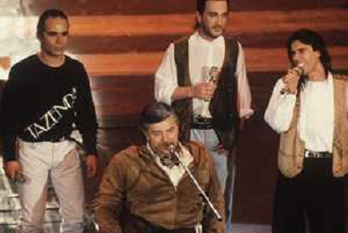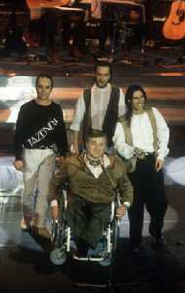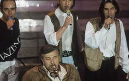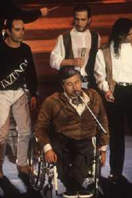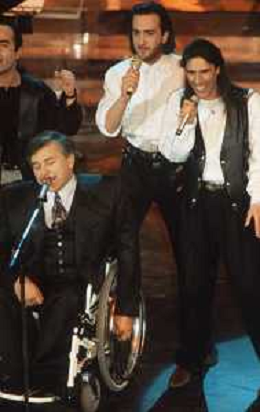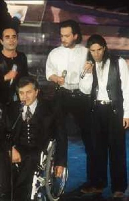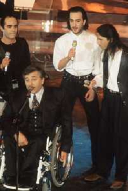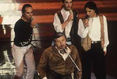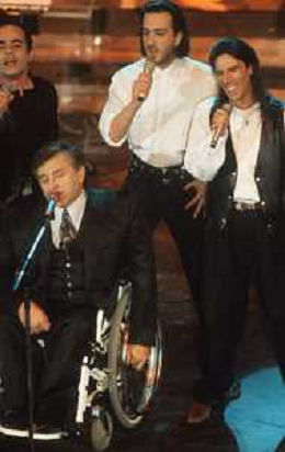 DIAP-RETROSPETTIVA PIERANGELO BERTOLI CANTANTE NELLA FOTO PIERANGELO BERTOLI A SANREMO NELL'ANNO 1991 CON IL COMPLESSO MUSICALE DEI TAZENDA AG ALDO LIVERANI SAS