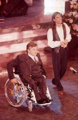 DIAP-RETROSPETTIVA PIERANGELO BERTOLI CANTANTE NELLA FOTO PIERANGELO BERTOLI A SANREMO NELL'ANNO 1991 CON LA MOGLIE BRUNA PATACCINI AG ALDO LIVERANI SAS