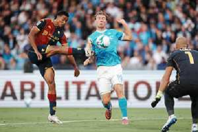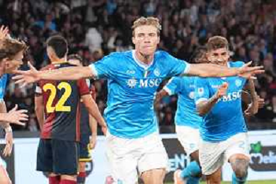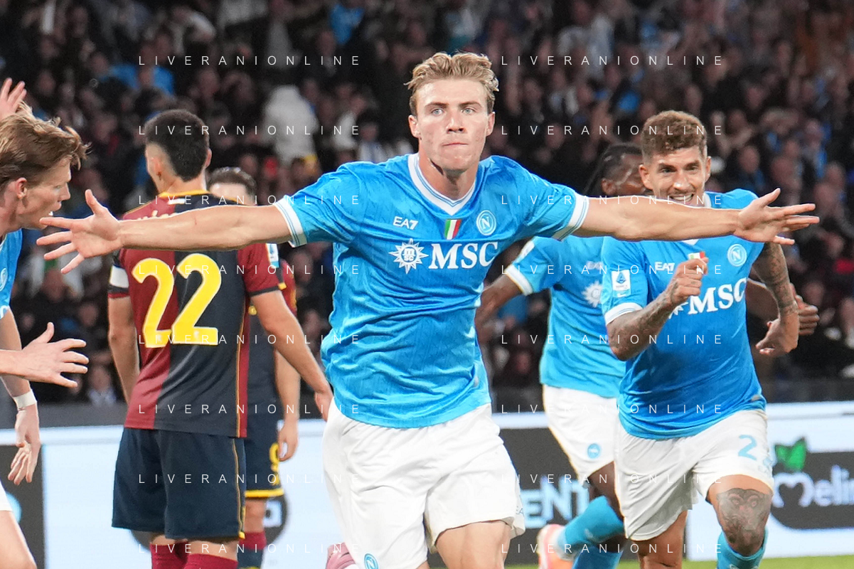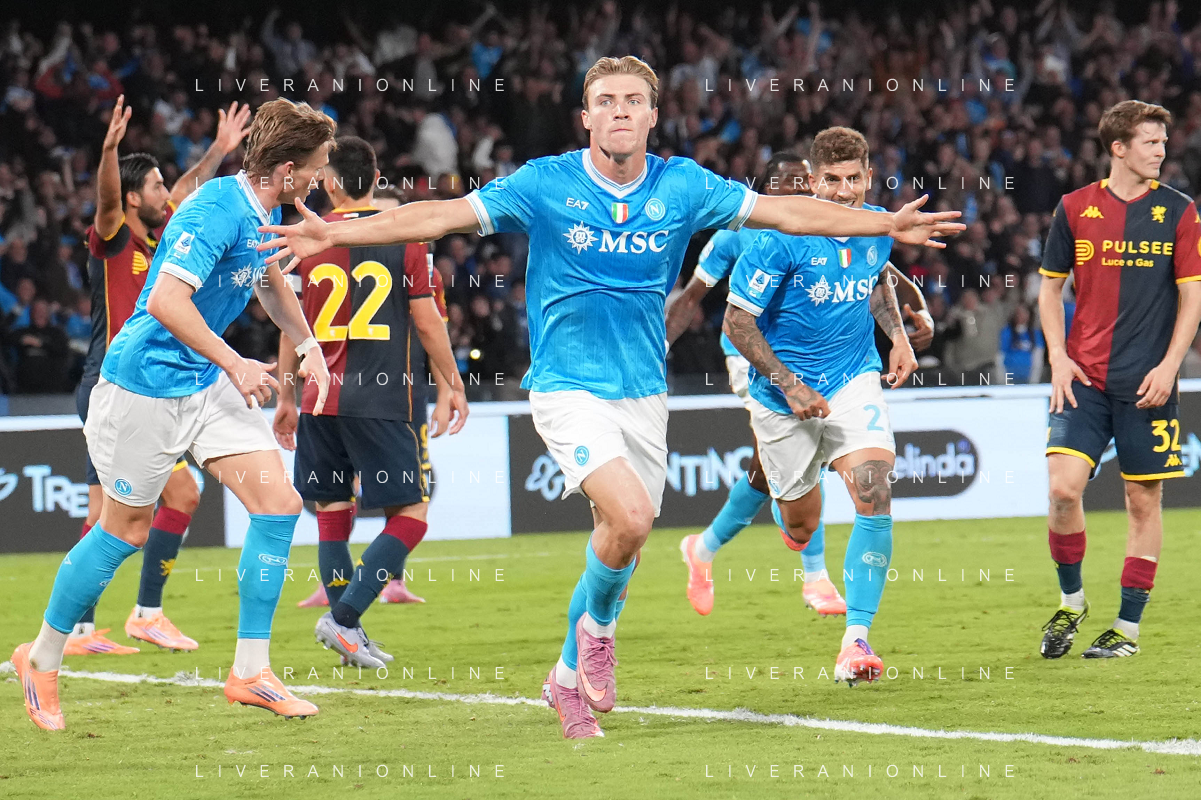 TVPM Napoli, Genoa Nella foto: gol Rasmus Hojlund Foto Mosca, Ag.Liverani- AGENZIA ALDO LIVERANI SAS -TVPM Napoli - Genoa Campionato Calcio Serie A 05.10.2025