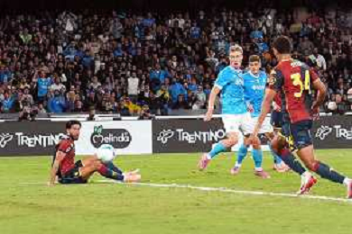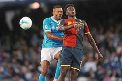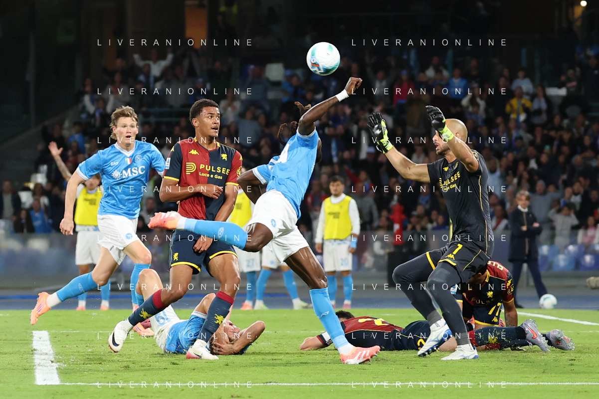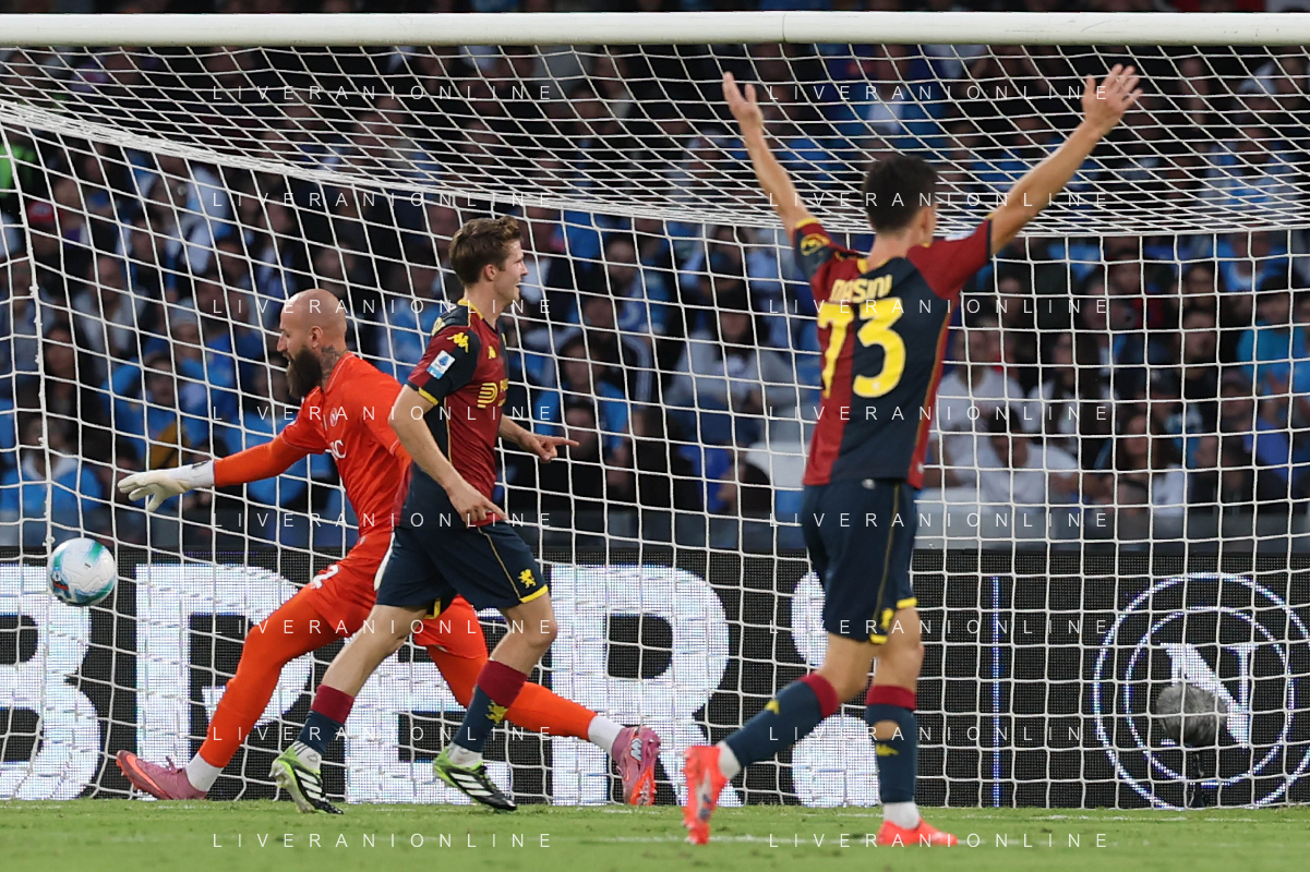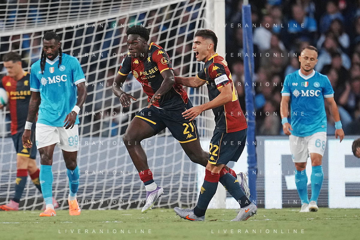 TVPM Napoli, Genoa Nella foto: gol Jeff Ekhator Foto Mosca, Ag.Liverani- AGENZIA ALDO LIVERANI SAS -TVPM Napoli - Genoa Campionato Calcio Serie A 05.10.2025