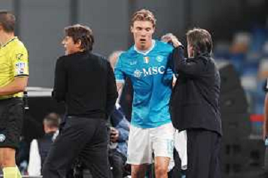 TVPM Napoli, Genoa Nella foto: Antonio Conte, Rasmus Hojlund Foto Mosca, Ag.Liverani- AGENZIA ALDO LIVERANI SAS -TVPM Napoli - Genoa Campionato Calcio Serie A 05.10.2025