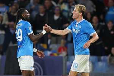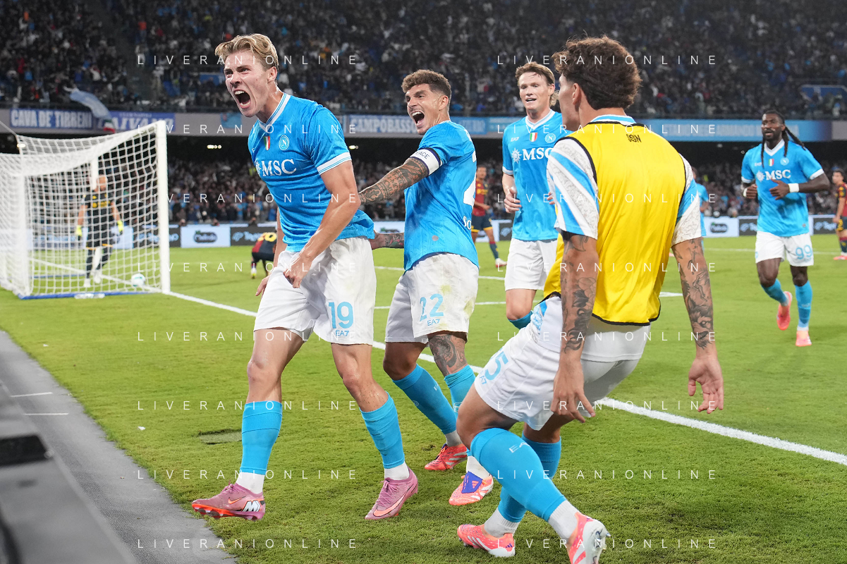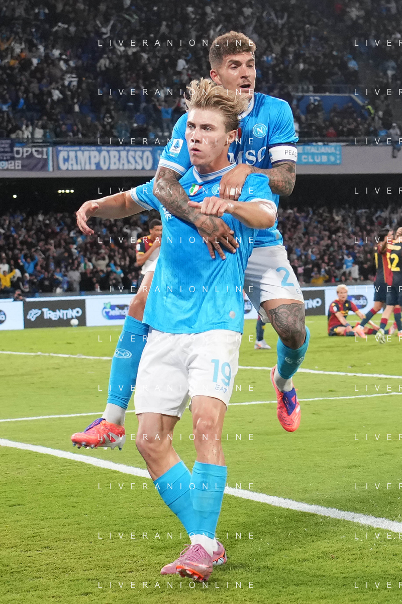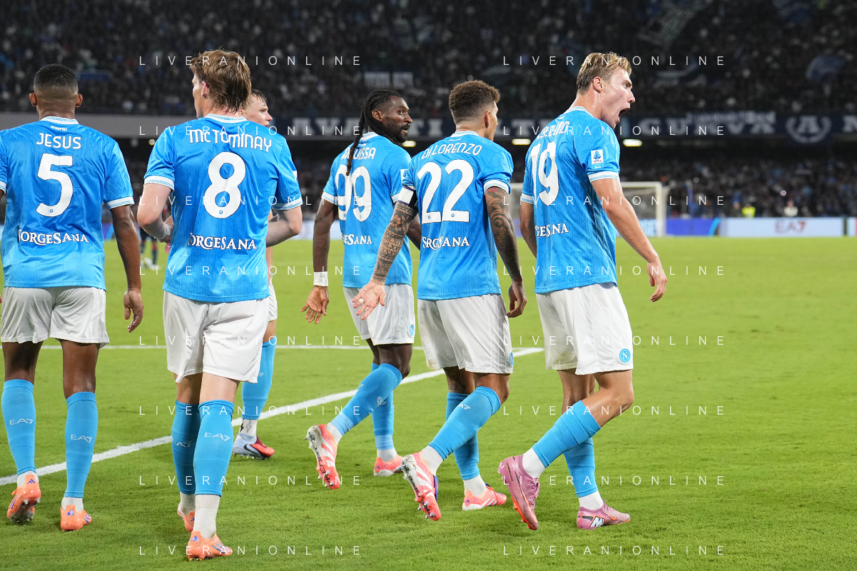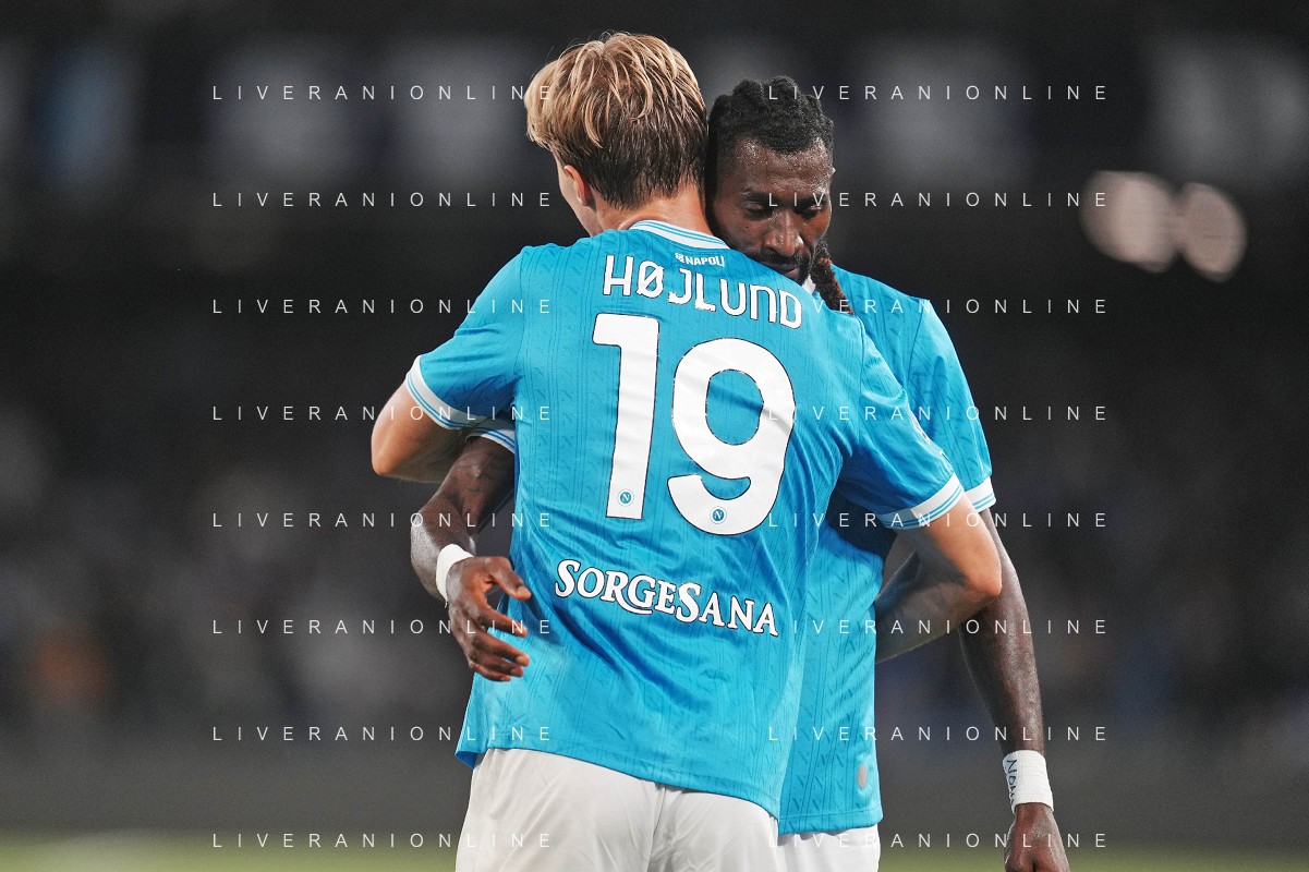 TVPM Napoli, Genoa Nella foto: esultanza Frank Anguissa, Rasmus Hojlund Foto Mosca, Ag.Liverani- AGENZIA ALDO LIVERANI SAS -TVPM Napoli - Genoa Campionato Calcio Serie A 05.10.2025
