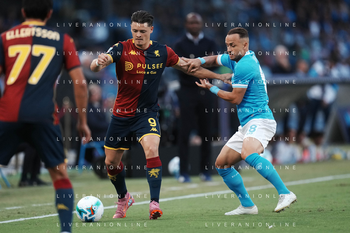 TVPM Napoli, Genoa Nella foto: Alessandro Marcandalli, Rasmus Hojlund Foto Mosca, Ag.Liverani- AGENZIA ALDO LIVERANI SAS -TVPM Napoli - Genoa Campionato Calcio Serie A 05.10.2025
