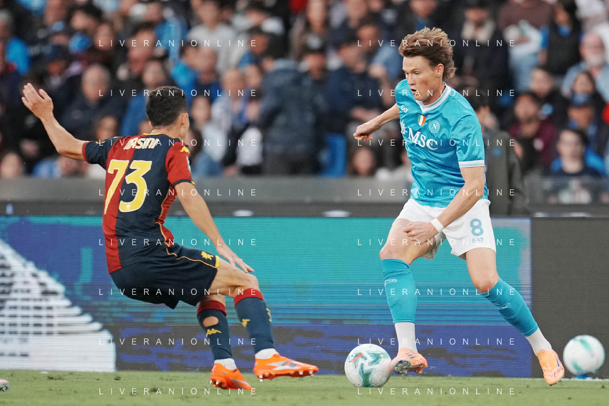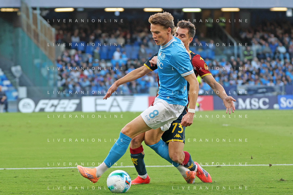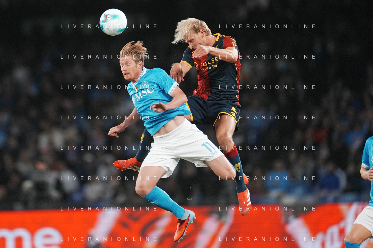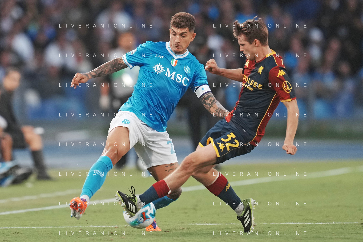 TVPM Napoli, Genoa Nella foto: Giovanni Di Lorenzo, Morten Frendrup Foto Mosca, Ag.Liverani- AGENZIA ALDO LIVERANI SAS -TVPM Napoli - Genoa Campionato Calcio Serie A 05.10.2025