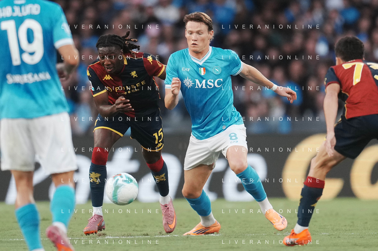 TVPM Napoli, Genoa Nella foto: Scott McTominay, Brooke Norton-Cuffy Foto Mosca, Ag.Liverani- AGENZIA ALDO LIVERANI SAS -TVPM Napoli - Genoa Campionato Calcio Serie A 05.10.2025