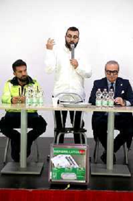 IMOLA 07 10 2025 CENTRO SOCIALE LA STALLA CONFERENZA STAMPA CONSEGNA DI DEFIBRILLATORE DA PARTE DI ASS.NEVER GIVE UP IN MEMORIA A NICOLA USSIA AL CENTRO SOCIALE LA STALLA NELLA FOTO DA DESTRA ASSESSORE PIERANGELO RAFFINI,ANTONIO USSIA ASS NEVER GIVE UP,NICOLA TANCREDI RESP INFERMIERISTICO 118 ©SANNA - AGENZIA ALDO LIVERANI SAS