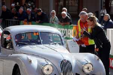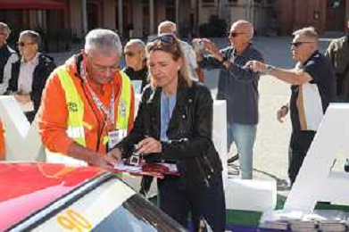 IMOLA 10 10 2025 MODENA CENTO ORE ITALIAN CLASSIC NELLA FOTO MODENA CENTO ORE ARRIVA IN PIAZZA MATTEOTTI PER UN CONTROLLO TIMBRO ASSESSORE ELENA PENAZZI FOTO GIANNI SANNA-AG ALDO LIVERANI SAS
