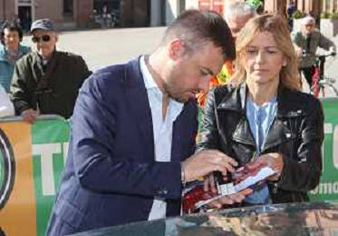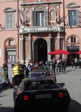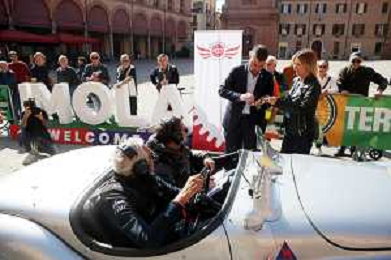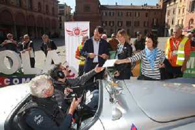 IMOLA 10 10 2025 MODENA CENTO ORE ITALIAN CLASSIC NELLA FOTO MODENA CENTO ORE ARRIVA IN PIAZZA MATTEOTTI PER UN CONTROLLO TIMBRO SINDACO MARCO PANIERI E ASSESSORE ELENA PENAZZI FOTO GIANNI SANNA-AG ALDO LIVERANI SAS