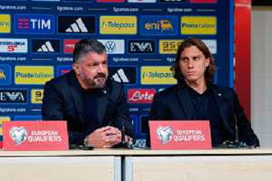 TVPG Estonia vs Italia nella foto Gennaro Gattuso (CT Italia) e Riccardo Calafiori (Italia), t10-10-2025 A. Le Coq Arena, Tallinn (EST) - Italia Pre match Press Conference European Qualifiers - FIFA World Cup 2026 Matchday 7 ©TVPG Pasquale Golia - AG ALDO LIVERANI SAS