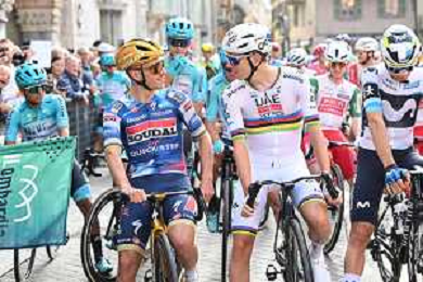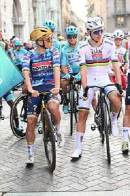 11-10-2025 Giro Di Lombardia; 2025, Uae Team Emirates - Xrg; 2025, Soudal - Quick Step; Pogacar, Tadej; Evenepoel, Remco; Como; ©SIROTTI - AG ALDO LIVERANI SAS