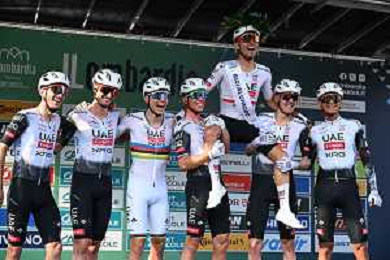 11-10-2025 Giro Di Lombardia; 2025, Uae Team Emirates - Xrg; Pogacar, Tadej; Como; ©SIROTTI - AG ALDO LIVERANI SAS