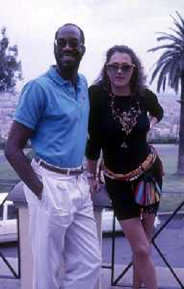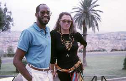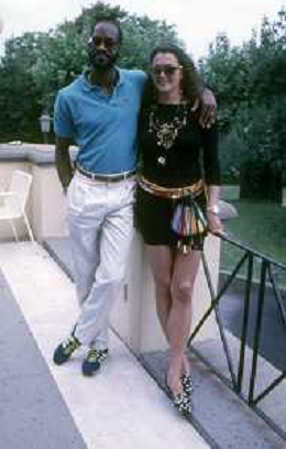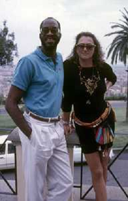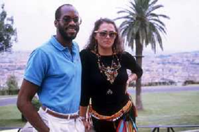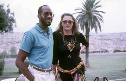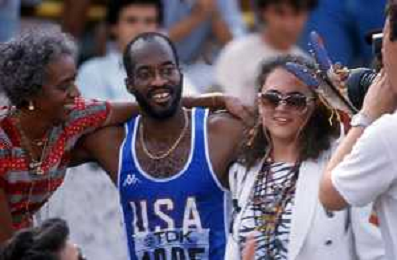 DIAP-RETROSPETTIVA EDWIN MOSES ATLETA NELLA FOTO EDWIN MOSES CON LA MOGLIE MIRELLA A ROMA AI MONIALI DI ATLETICA NELL'ANNO 1987 AG ALDO LIVERANI SAS