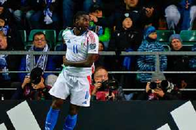 TVEM October 11, 2025 Tallinn, Estonia - Estonia vs Italy - European Qualifiers FIFA World Cup 2026 Matchday 7 - A. Le Coq Arena. In the pic: Moise Kean of Italy celebrates after scoring a goal ©TVEM Emmanuele Mastrodonato - AGENZIA ALDO LIVERANI SAS