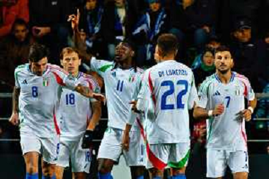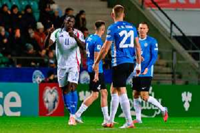 TVEM October 11, 2025 Tallinn, Estonia - Estonia vs Italy - European Qualifiers FIFA World Cup 2026 Matchday 7 - A. Le Coq Arena. In the pic: Moise Kean of Italy celebrates after scoring a goal with teammates ©TVEM Emmanuele Mastrodonato - AGENZIA ALDO LIVERANI SAS