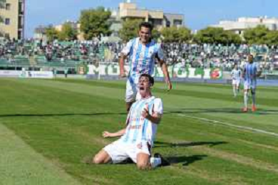 12 10 2025 - Monopoli. Stadio Vito Simone Veneziani. Serie C. Monopoli-Salernitana Nella foto esultanza di Galo Capomaggio dopo gol 0-1 Foto Giuseppe Cuozzo/Agenzia Liverani- AGENZIA ALDO LIVERANI SAS
