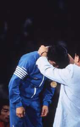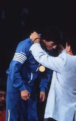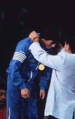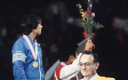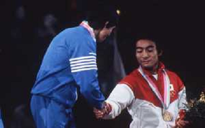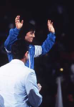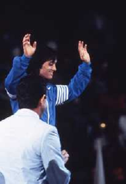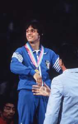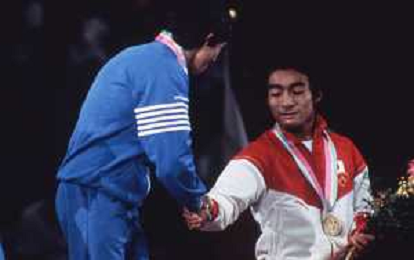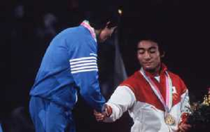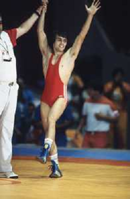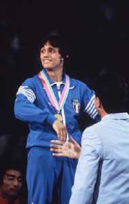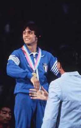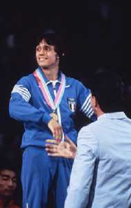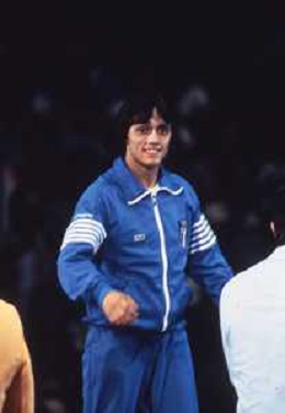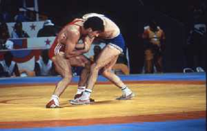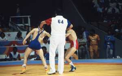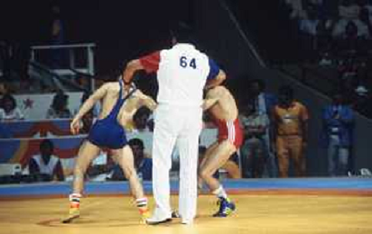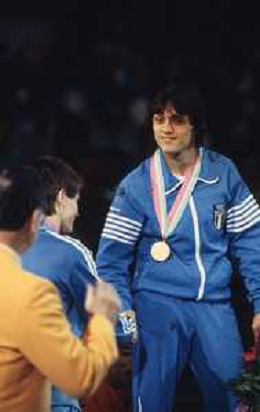 DIAP-RETROSPETTIVA VINCENZO MAENZA LOTTATORE NELLA FOTO VINCENZO MAENZA PARTECIPA ALLE OLIMPIADI DI LOS ANGELES 1984 ARCHIVIO DFP-AG ALDO LIVERANI SAS
