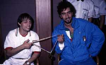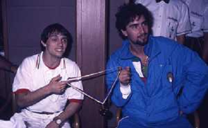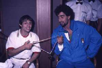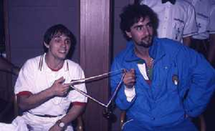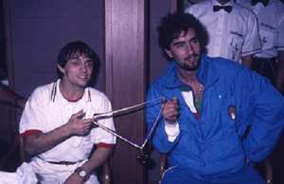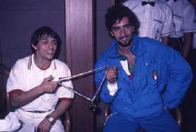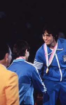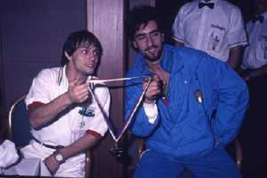 DIAP-RETROSPETTIVA VINCENZO MAENZA LOTTATORE NELLA FOTO VINCENZO MAENZA ALLE OLIMPIADI DI LOS ANGELES 1984 CON STEFANO CERIONI ARCHIVIO DFP-AG ALDO LIVERANI SAS