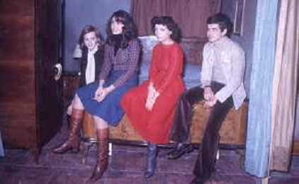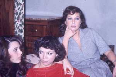 DIAP-RETROSPETTIVA GIULIETTA MASINA ATTRICE NELLA FOTO GIULIETTA MASINA CON IL CAST DEL FILM “ CAMILLA“ NELL' ANNO 1976 E SANDRO BOLCHI REGISTA AG ALDO LIVERANI SAS