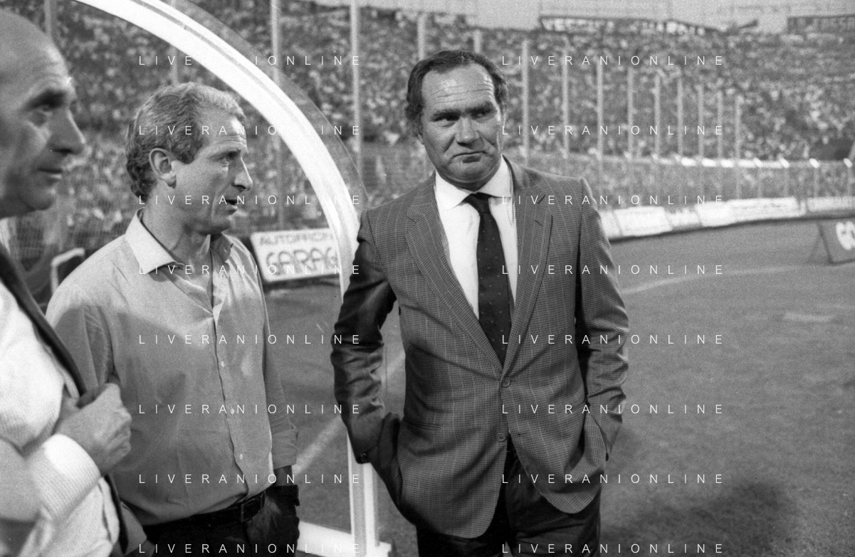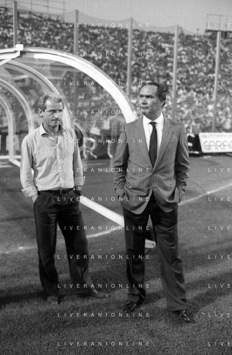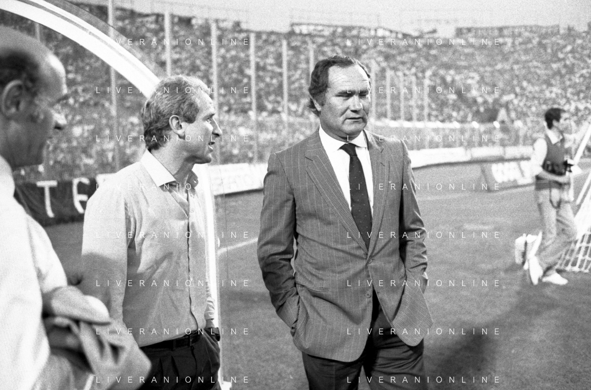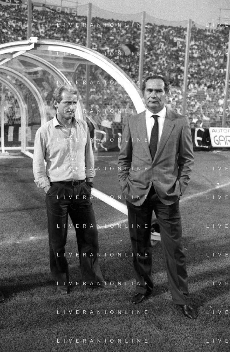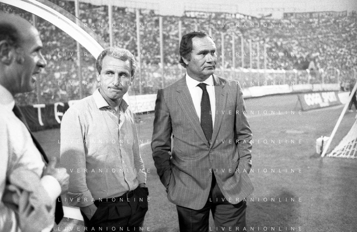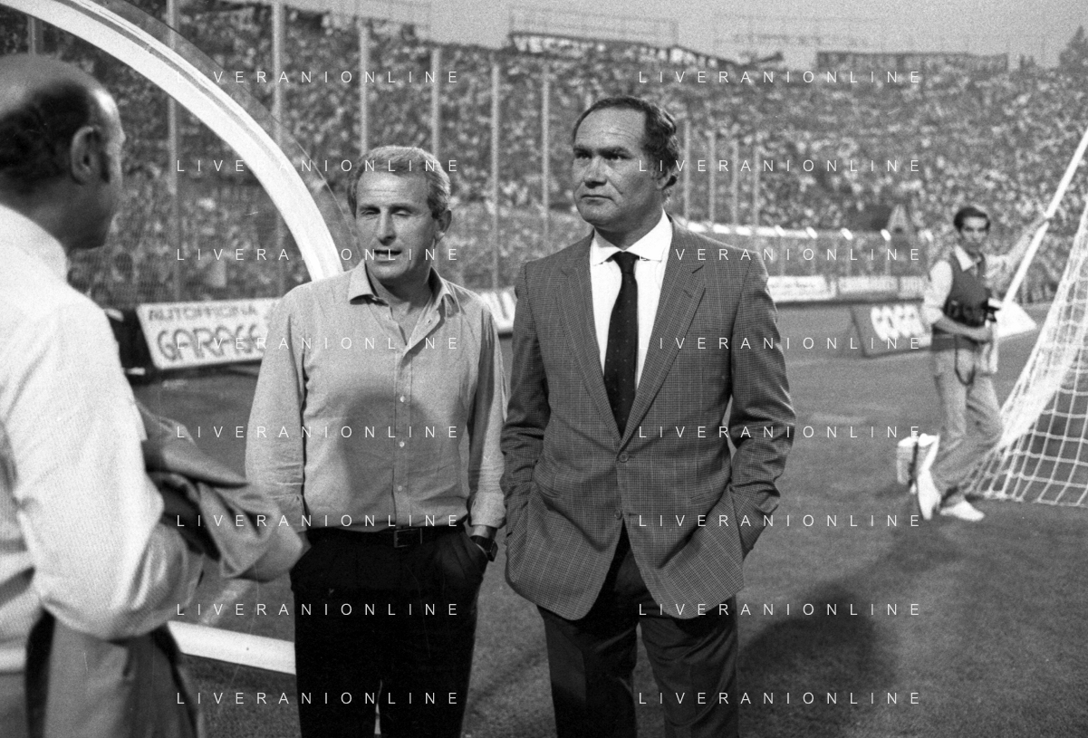 NEG- RETROSPETTIVA GIOVANNI TRAPATTONI ALLENATORE JUVENTUS NELLA FOTO GIOVANNI TRAPATTONI CON NEDO SONETTI ALLENATORE ATALANTA CAMPIONATO CALCIO SERIE A - NELL’ANNO 1984 - 1985 AG ALDO LIVERANI SAS