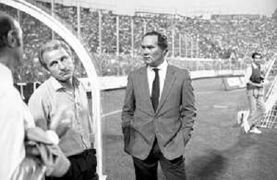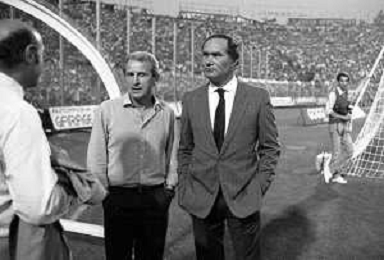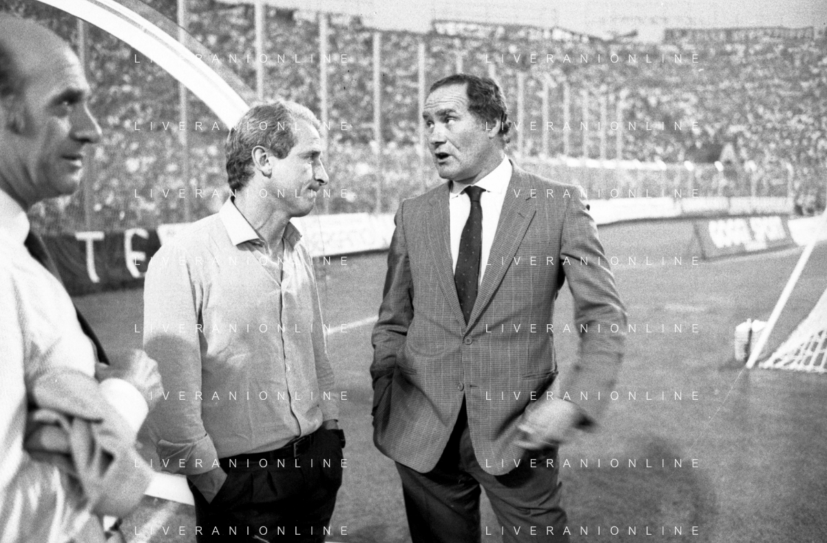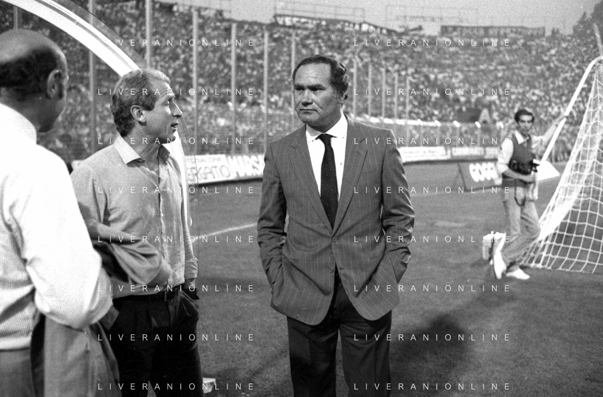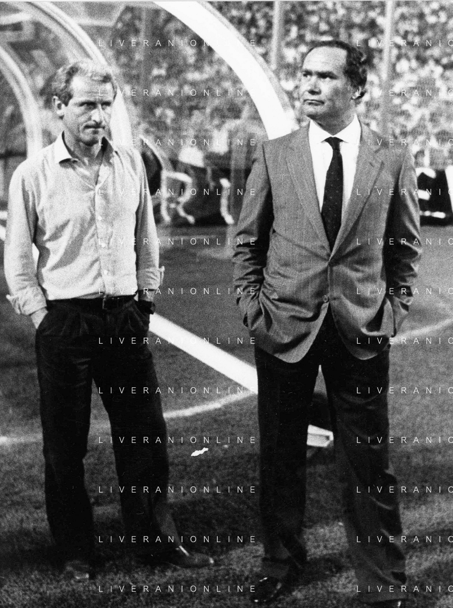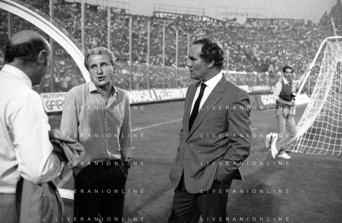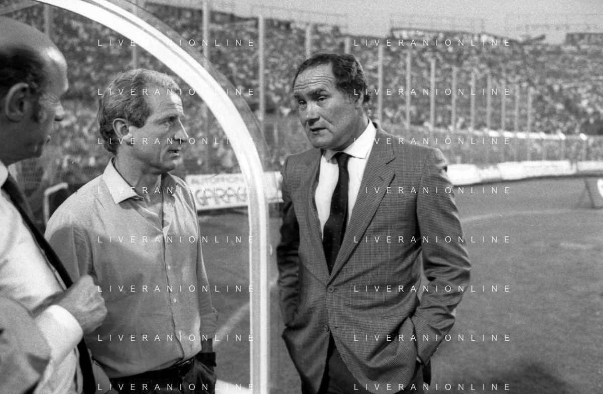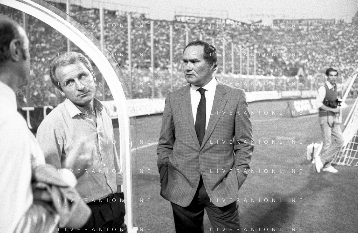 NEG- RETROSPETTIVA GIOVANNI TRAPATTONI ALLENATORE JUVENTUS NELLA FOTO GIOVANNI TRAPATTONI CON NEDO SONETTI ALLENATORE ATALANTA CAMPIONATO CALCIO SERIE A - NELL’ANNO 1984 - 1985 AG ALDO LIVERANI SAS