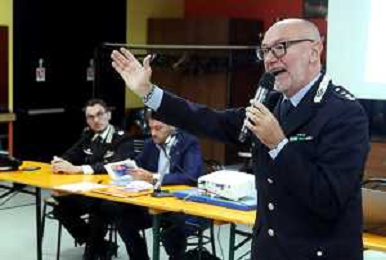 IMOLA 13 10 2025 CENTRO SOCIALE CAMPANELLA INCONTRO PUBBLICO DI SENZIBILIZZAZIONE PER IL CONTRASTO ALLE TRUFFE AGLI ANZIANI NELLA FOTO COMMANDANTE DELLA POLIZIA LOCALE IMOLA MASSIMILIANO GALLONI ©SANNA - AGENZIA ALDO LIVERANI SAS