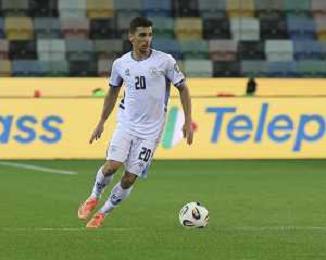 Dan Biton of Israel play the ball during Italy vs Israel, European Qualifier, Group I, matchday 8, game at Bluenergy stadium in Udine (UD), Italy, on October 14, 2025. (Photo by Davide Casentini) ©TVDC Casentini Davide - AGENZIA ALDO LIVERANI SAS