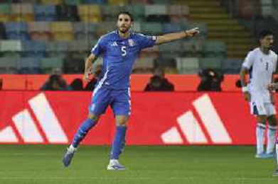Manuel Locatelli of Italy gestures during Italy vs Israel, European Qualifier, Group I, matchday 8, game at Bluenergy stadium in Udine (UD), Italy, on October 14, 2025. (Photo by Davide Casentini) ©TVDC Casentini Davide - AGENZIA ALDO LIVERANI SAS