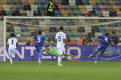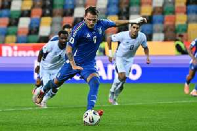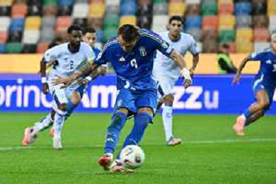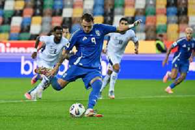 mateo Retegui of Italy scores a goal on penalty during Italy vs Israel, European Qualifier, Group I, matchday 8, game at Bluenergy stadium in Udine (UD), Italy, on October 14, 2025. (Photo by Davide Casentini) ©TVDC Casentini Davide - AGENZIA ALDO LIVERANI SAS