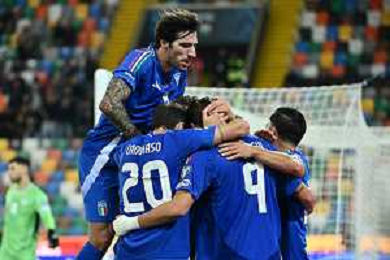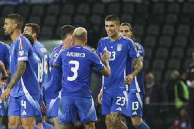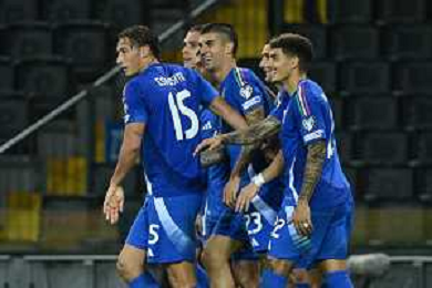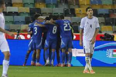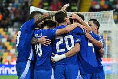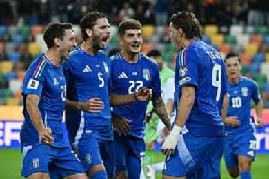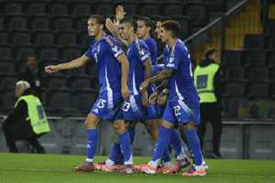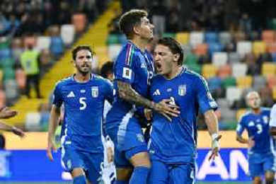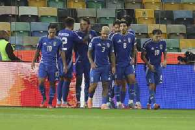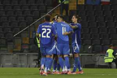 TVRG Italia vs Israele nella foto giocatori Italia esultanza dopo il gol del 3 a 0 Udine 14-10-2025 Stadio Friuli Italia vs Israele Qualificazioni Mondiali 2026 Gruppo I - 8a giornata foto Roberto Garavaglia/Agenzia Aldo Liverani sas