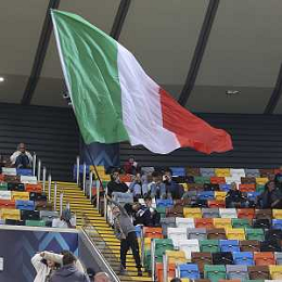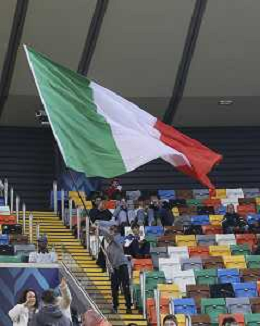 The italian flag wave before Italy vs Israel, European Qualifier, Group I, matchday 8, game at Bluenergy stadium in Udine (UD), Italy, on October 14, 2025. (Photo by Davide Casentini) ©TVDC Casentini Davide - AGENZIA ALDO LIVERANI SAS