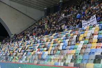 the first 10 row of seats free of people in Italy vs Israel, European Qualifier, Group I, matchday 8, game at Bluenergy stadium in Udine (UD), Italy, on October 14, 2025. (Photo by Davide Casentini) ©TVDC Casentini Davide - AGENZIA ALDO LIVERANI SAS