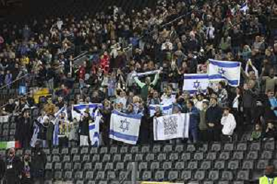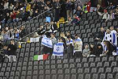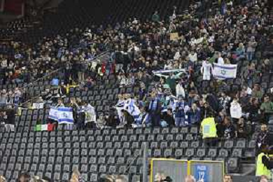 Israel fans show their support during Italy vs Israel, European Qualifier, Group I, matchday 8, game at Bluenergy stadium in Udine (UD), Italy, on October 14, 2025. (Photo by Davide Casentini) ©TVDC Casentini Davide - AGENZIA ALDO LIVERANI SAS