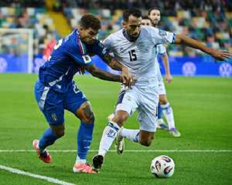 TVRG Italia vs Israele nella foto Giovanni Di Lorenzo (Italia) e Eliel Peretz (Israele) Udine 14-10-2025 Stadio Friuli Italia vs Israele Qualificazioni Mondiali 2026 Gruppo I - 8a giornata foto Roberto Garavaglia/Agenzia Aldo Liverani sas