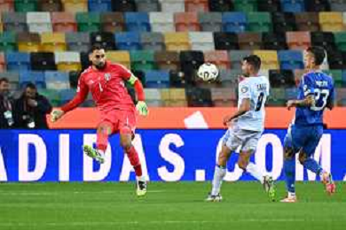Gianluigi Donnarumma of Italy gestures during Italy vs Israel, European Qualifier, Group I, matchday 8, game at Bluenergy stadium in Udine (UD), Italy, on October 14, 2025. (Photo by Davide Casentini) ©TVDC Casentini Davide - AGENZIA ALDO LIVERANI SAS