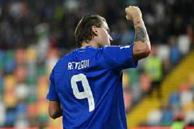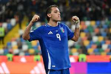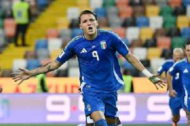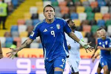 Mateo Retegui of Italy scores a second goal during Italy vs Israel, European Qualifier, Group I, matchday 8, game at Bluenergy stadium in Udine (UD), Italy, on October 14, 2025. (Photo by Davide Casentini) ©TVDC Casentini Davide - AGENZIA ALDO LIVERANI SAS