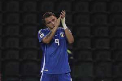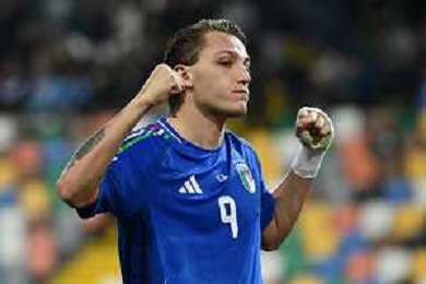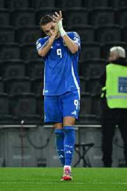 Mateo Retegui of Italy celebrates after scoring during Italy vs Israel, European Qualifier, Group I, matchday 8, game at Bluenergy stadium in Udine (UD), Italy, on October 14, 2025. (Photo by Davide Casentini) ©TVDC Casentini Davide - AGENZIA ALDO LIVERANI SAS