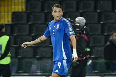 Francesco Pio Esposito of Italy during Italy vs Israel, European Qualifier, Group I, matchday 8, game at Bluenergy stadium in Udine (UD), Italy, on October 14, 2025. (Photo by Davide Casentini) ©TVDC Casentini Davide - AGENZIA ALDO LIVERANI SAS