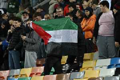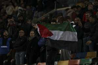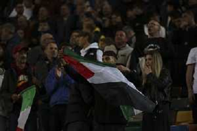 one person explose the palesine flag at the cendf of Italy vs Israel, European Qualifier, Group I, matchday 8, game at Bluenergy stadium in Udine (UD), Italy, on October 14, 2025. (Photo by Davide Casentini) ©TVDC Casentini Davide - AGENZIA ALDO LIVERANI SAS