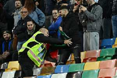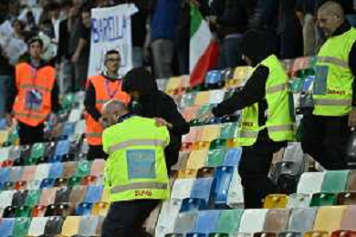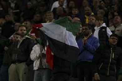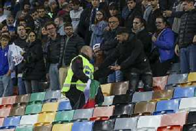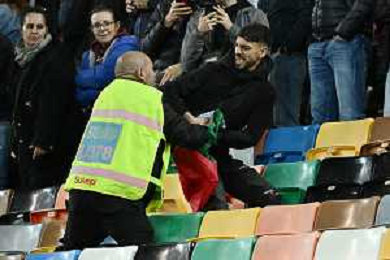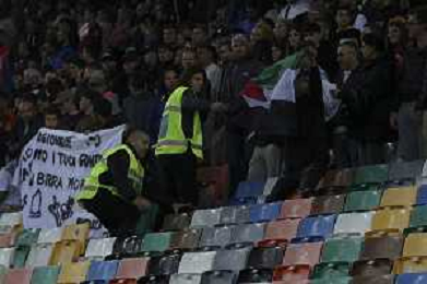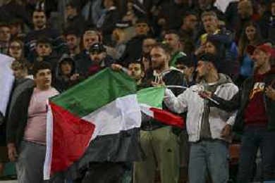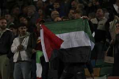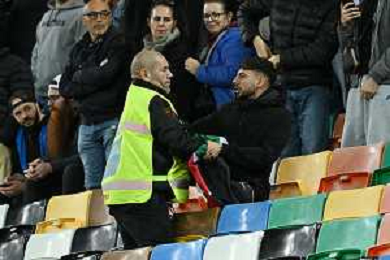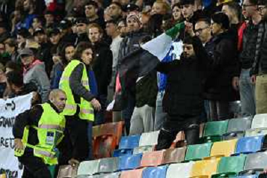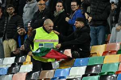 TVRG Italia vs Israele nella foto un uomo con la bandiera della Palestina viene bloccato dagli steward Udine 14-10-2025 Stadio Friuli Italia vs Israele Qualificazioni Mondiali 2026 Gruppo I - 8a giornata foto Roberto Garavaglia/Agenzia Aldo Liverani sas