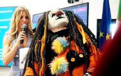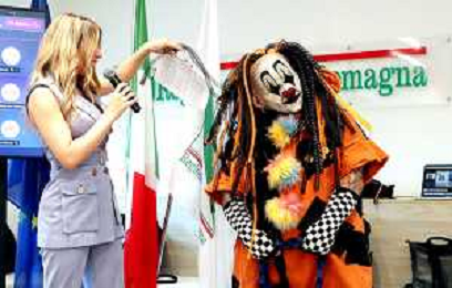 BOLOGNA14 10 2025 REGIONE EMILIA ROMAGNA CONFERENZA STAMPA "MONSTERLAND HALLOWEEN FESTIVAL"PRESENTA LA 15 EDIZIONE PER LA PRIMA VOLTA PRESSO AUTODROMO ENZO E DINO FERRARI DI IMOLA NELLA FOTO PRESENTATRICE EVA GINI E MASCOTE DELL'EVENTO FOTO GIANNI SANNA-AG ALDO LIVERANI SAS
